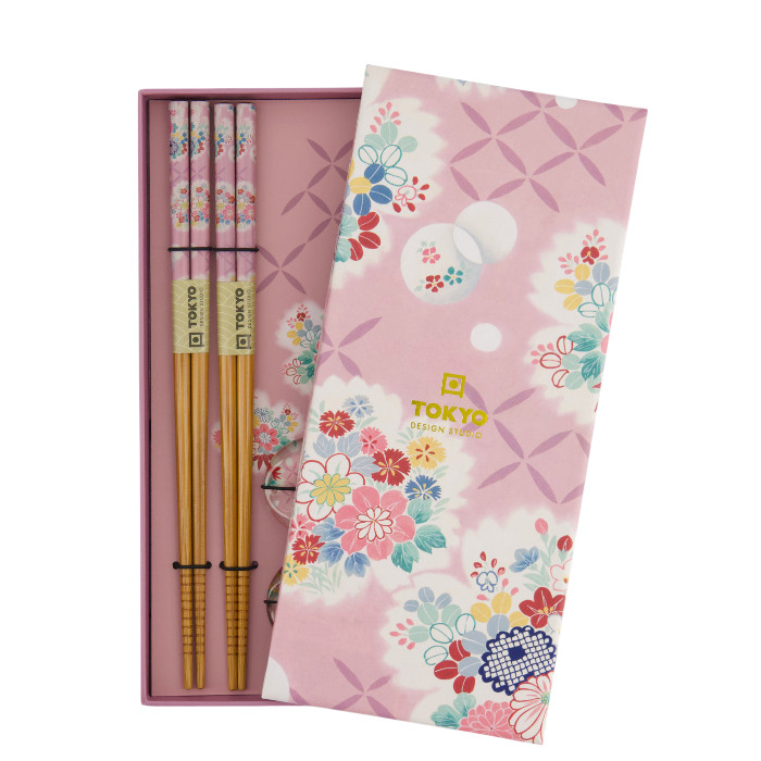 TDS, 2 Paar Essstäbchen, Pink Flower, mit Essstäbchenablage, Art.-Nr. 33921